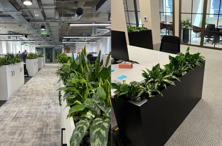 Adding planters also prevents unsightly paperwork and clutter from being left on cabinets and tambour units, making the office more neat and tidy.