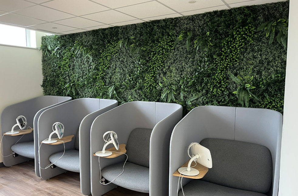 To begin the second phase we installed a branded artificial wall in the reception area to greet visitors with an effective backdrop.